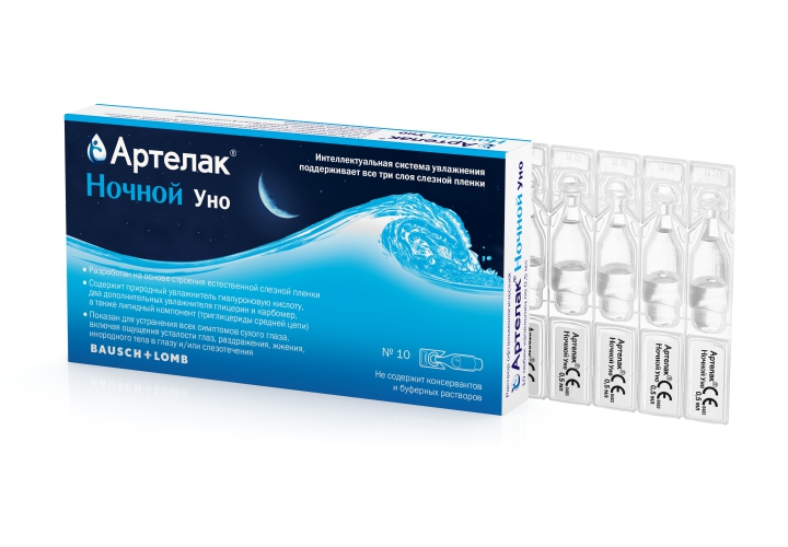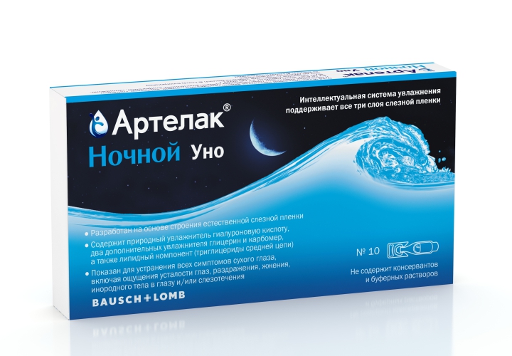 Артелак Ночной это средство для комплексного увлажнения, которое поддерживает все три слоя слезной пленки: липидную (за счет триглицеридов), водную (за гиалуроновой кислоты и глицерина) и слизистую фазу (за счет карбомера) с целью улучшения и поддержания увлажненности глазной поверхности при любых симптомах сухости и дискомфорта в глазах.