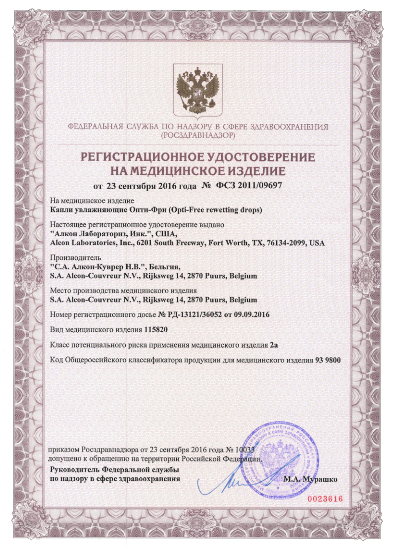 Капли Opti-Free могут использоваться по мере необходимости в течение дня: необходимо закапать 1-2 капли и несколько раз поморгать, линзы снимать не требуется. Подробная инструкция по применению приведена на вкладыше в упаковке.