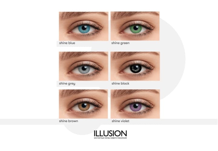 Линия SHINE позволит радикально изменить цвет глаз, имеет глубокий однородный принт, который как оттеняет естественный цвет глаз, так и может полностью перекрыть его. Ваш взгляд в любом случае станет более насыщенным и сияющим. В коллекции представлены 6 оттенков: зелёный, голубой, серый, чёрный. Линзы представлены от 0.0 (без коррекции) и с диоптриями до -6.0D.