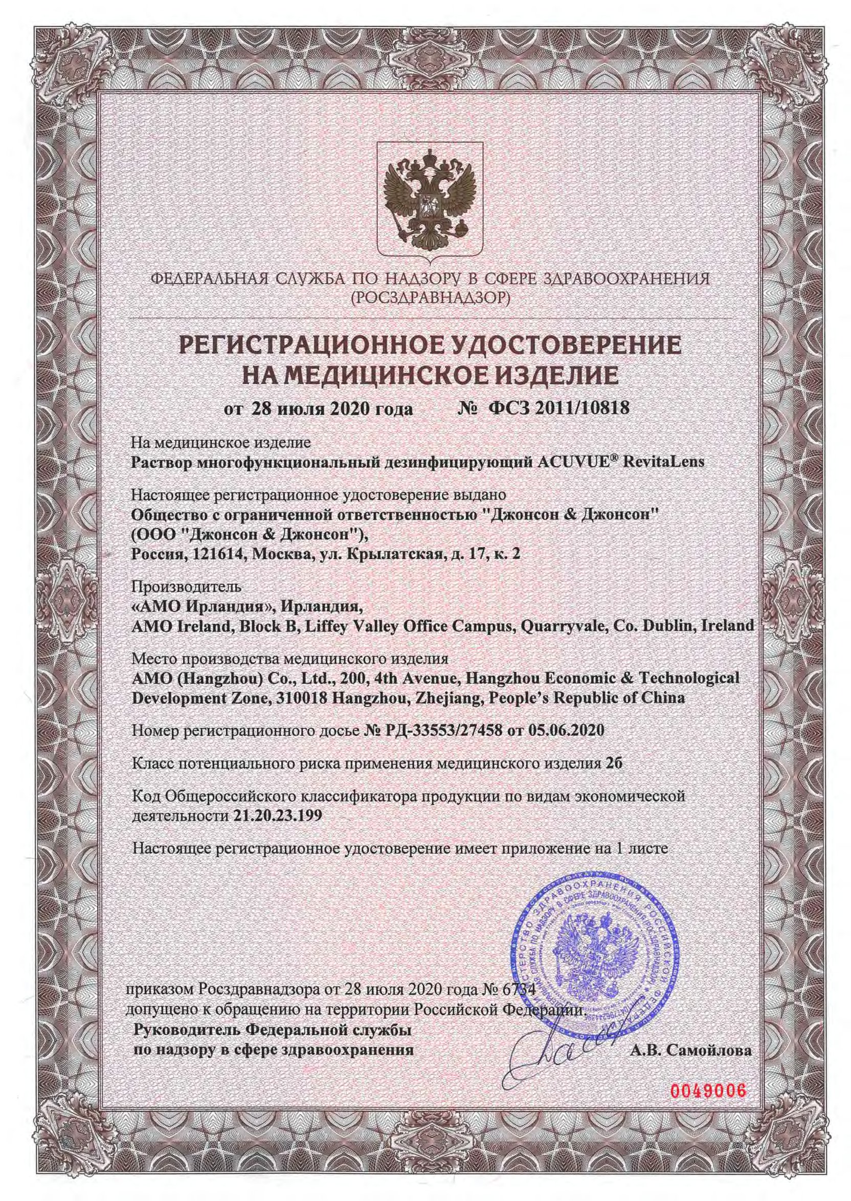 Запрещено капать раствор ACUVUE ® RevitaLens* непосредственно в глаза.
