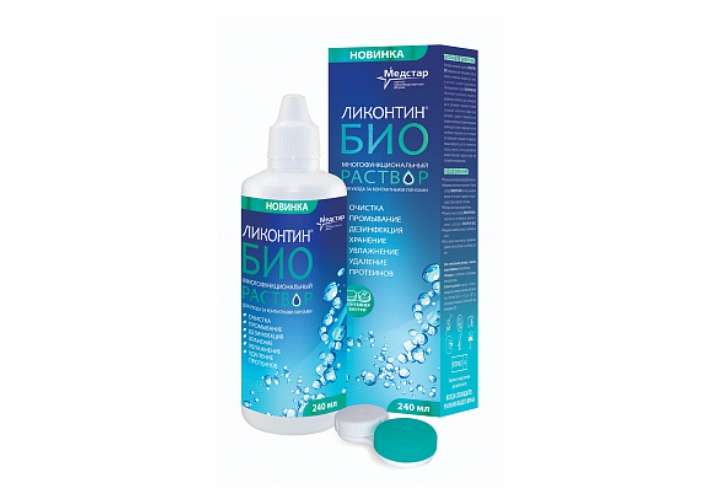 Сбалансированный состав ЛИКОНТИН-БИО обеспечивает комплексное очищение и дезинфекцию контактных линз, используется для их промывания и хранения.